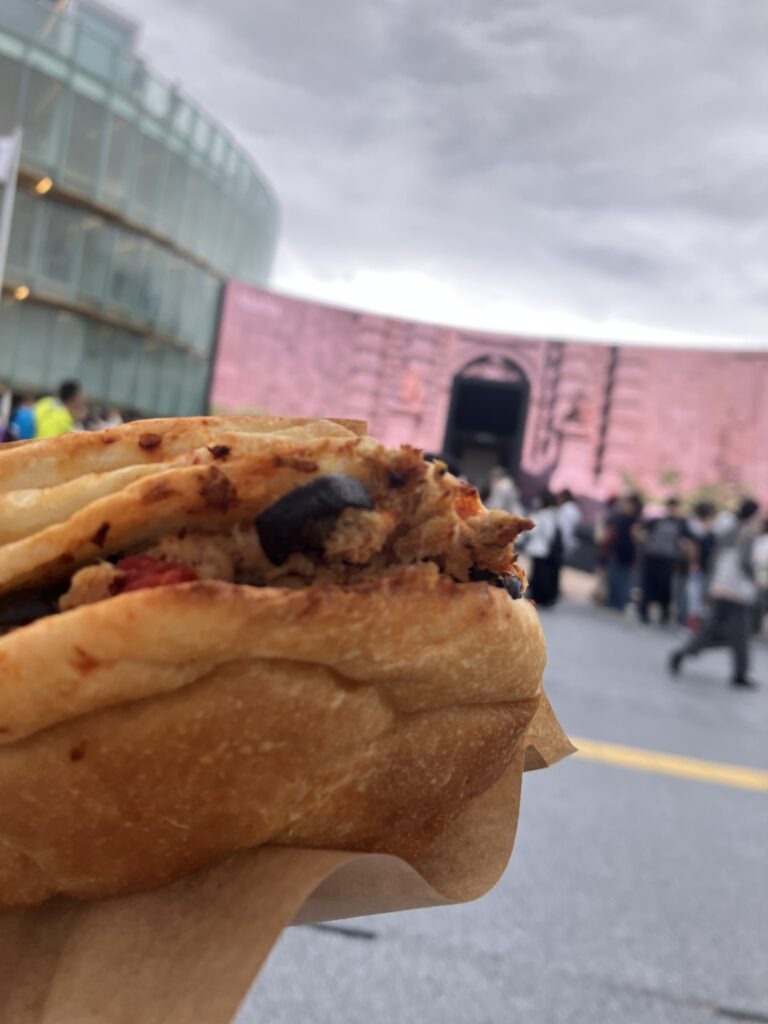 クウェート館のテイクアウトが並びやすそうだったので、バクラヴァとピスタチオロールを購入。バクラヴァは日本でアレンジされたものは食べたことがありましたが、本場のものは初めて。蜜がじゅわっと滲み出てきて止まらないの。ピスタチオロールもシロップ漬けタイプ。