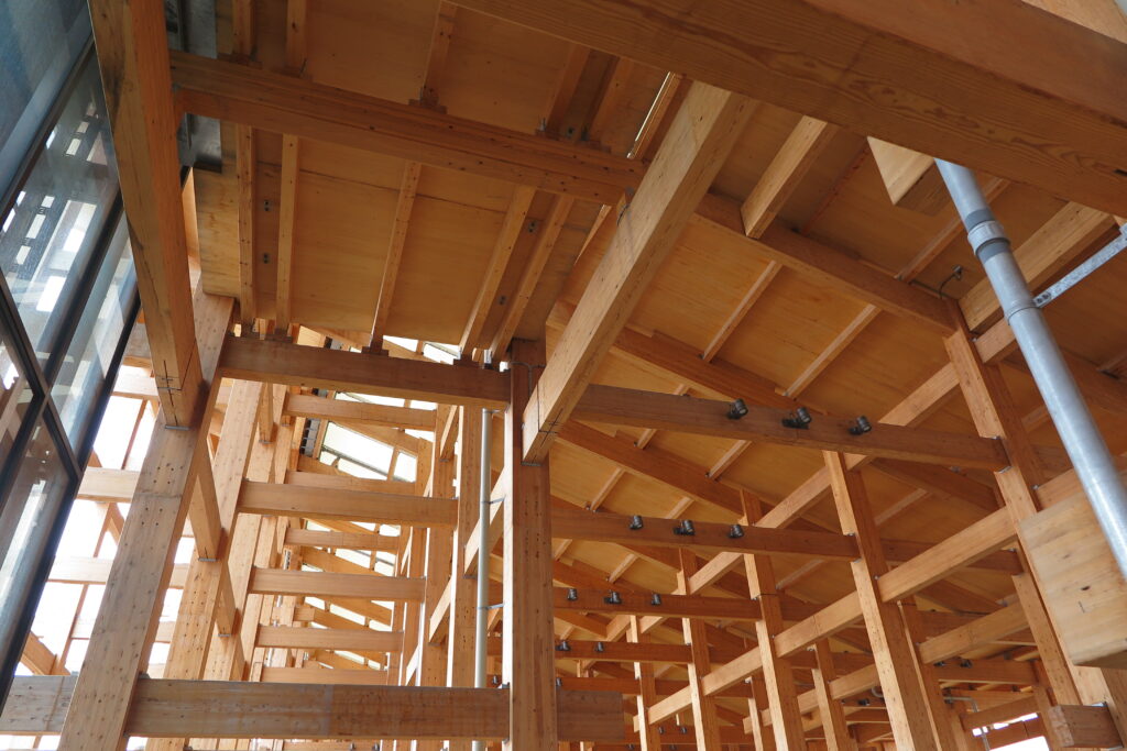 大屋根リングの本当の価値は一番上まで登った人にしか分からないと思います。大きなリングが、さらに大きな山のリングに囲まれてるんです。リングのなだらかな傾斜と、山の高低差のリンク。自分自身も景色の一部になったような不思議な感覚になります。これ、現地に立たないと体感できないんですよ。