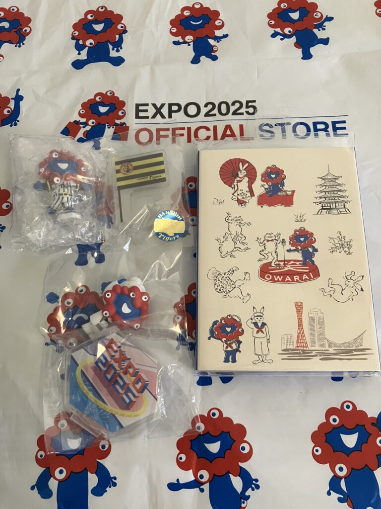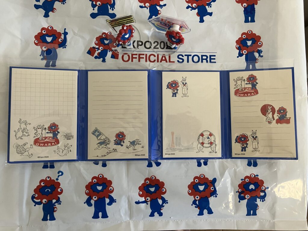 目当ては2種類、フィギュアコレクションと、パタパタメモ。前回は売り切れていたので、ゲットできてうれしい! 買いそびれたビニル袋もゲットしました。ミャクミャクがいっぱいでかわいい。