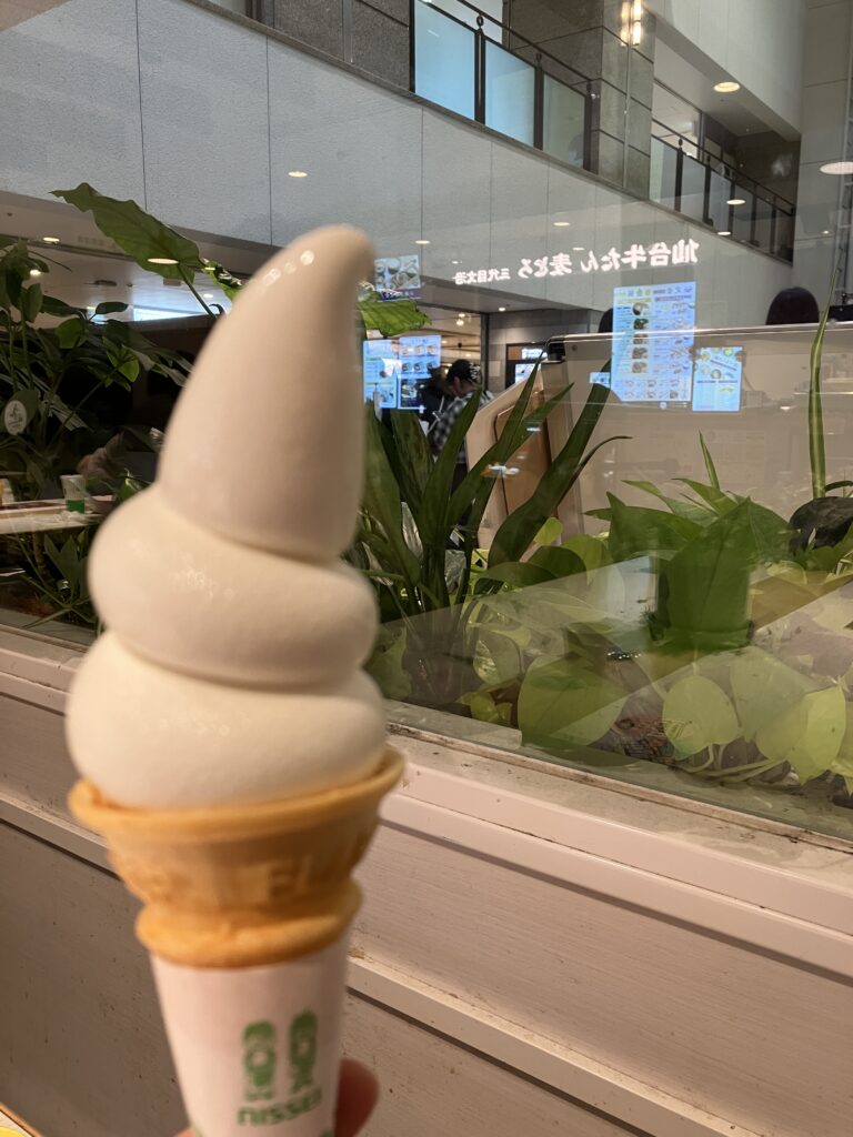 こちらも気になっていたクレープ屋さんなのですが、メニューはソフトクリーム。ミルク感強めのソフトクリームでした。