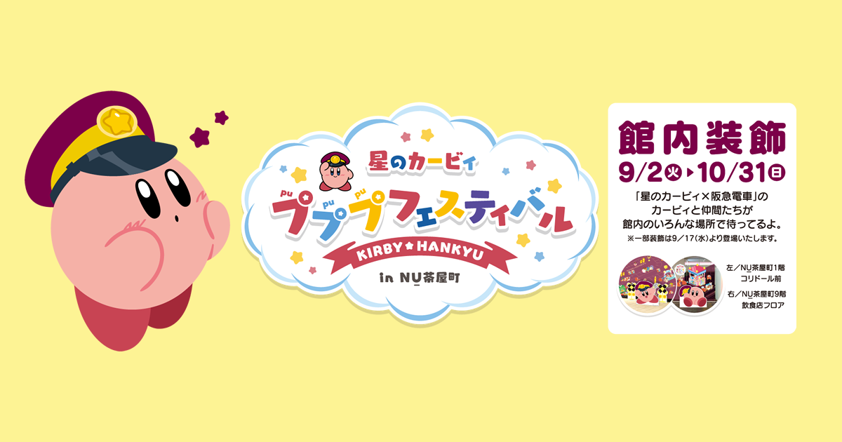 星のカービィと阪急電車のコラボ企画があるということで行ってきました。今回はNU茶屋町と三番街へ。プププフェスティバルって名前からかわいい。イベント内容は日によって変わるので、確認してから行ってくださいね。9月6日の記録です。