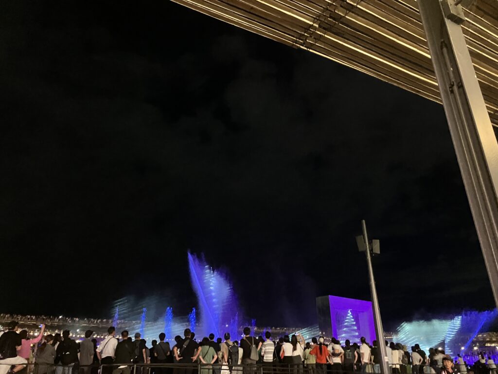 夕方からよるにかけて、雰囲気が変わっていくのも楽しかったです。特に夜は各パビリオンのライトアップがきれい。