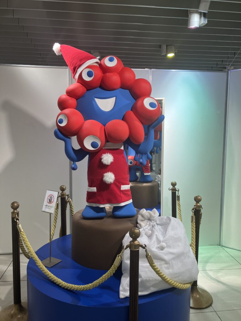 2階にはサンタミャクミャクがいましたよ。鏡で後ろ姿が見えるように配慮されていました。親切!