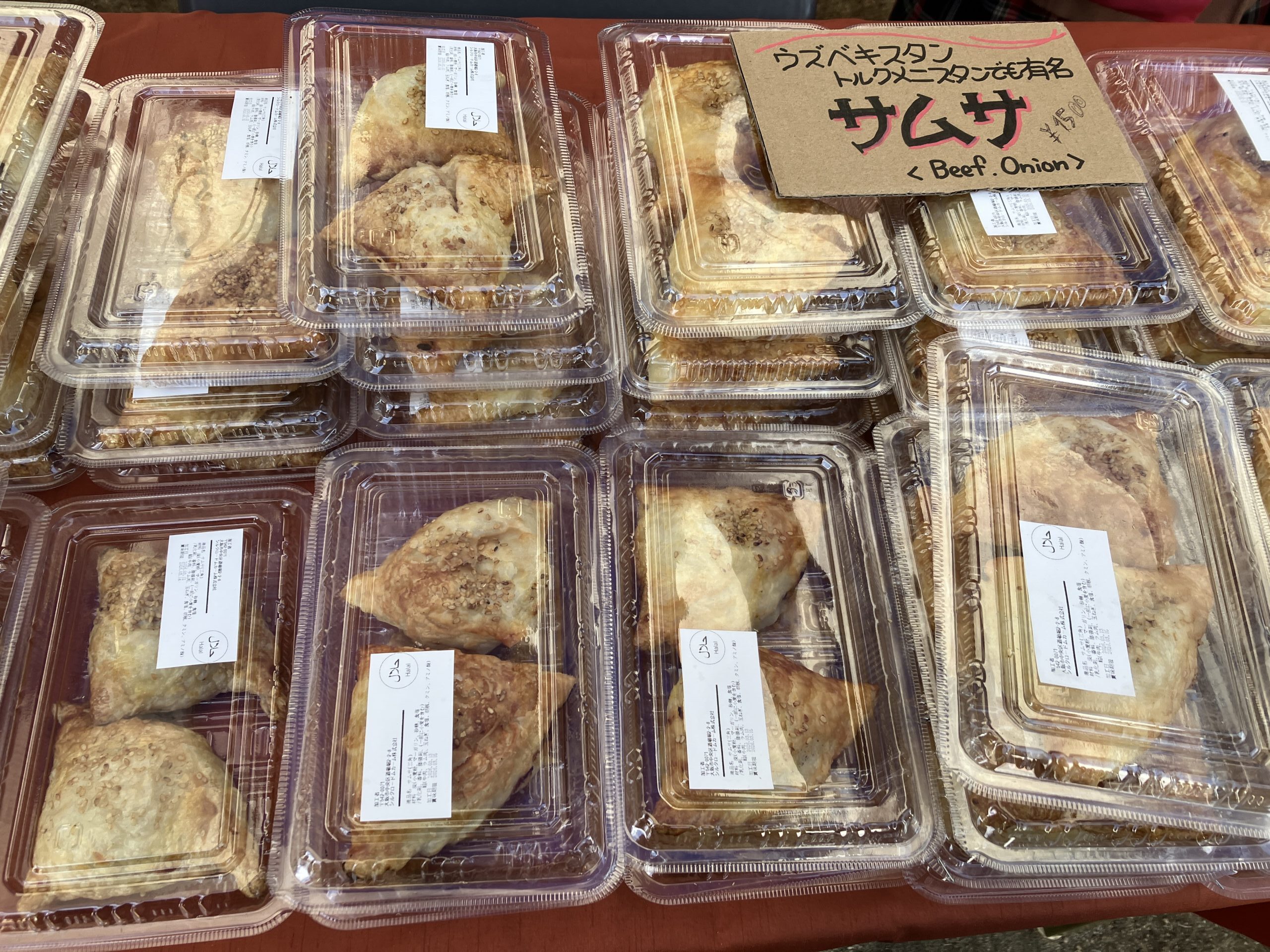 日本ではサモサの方が通るかもしれません。三角形のパイ生地に具をれたもの。トルコ、ウズベキスタン、トルクメニスタン共同のブースで購入しました。